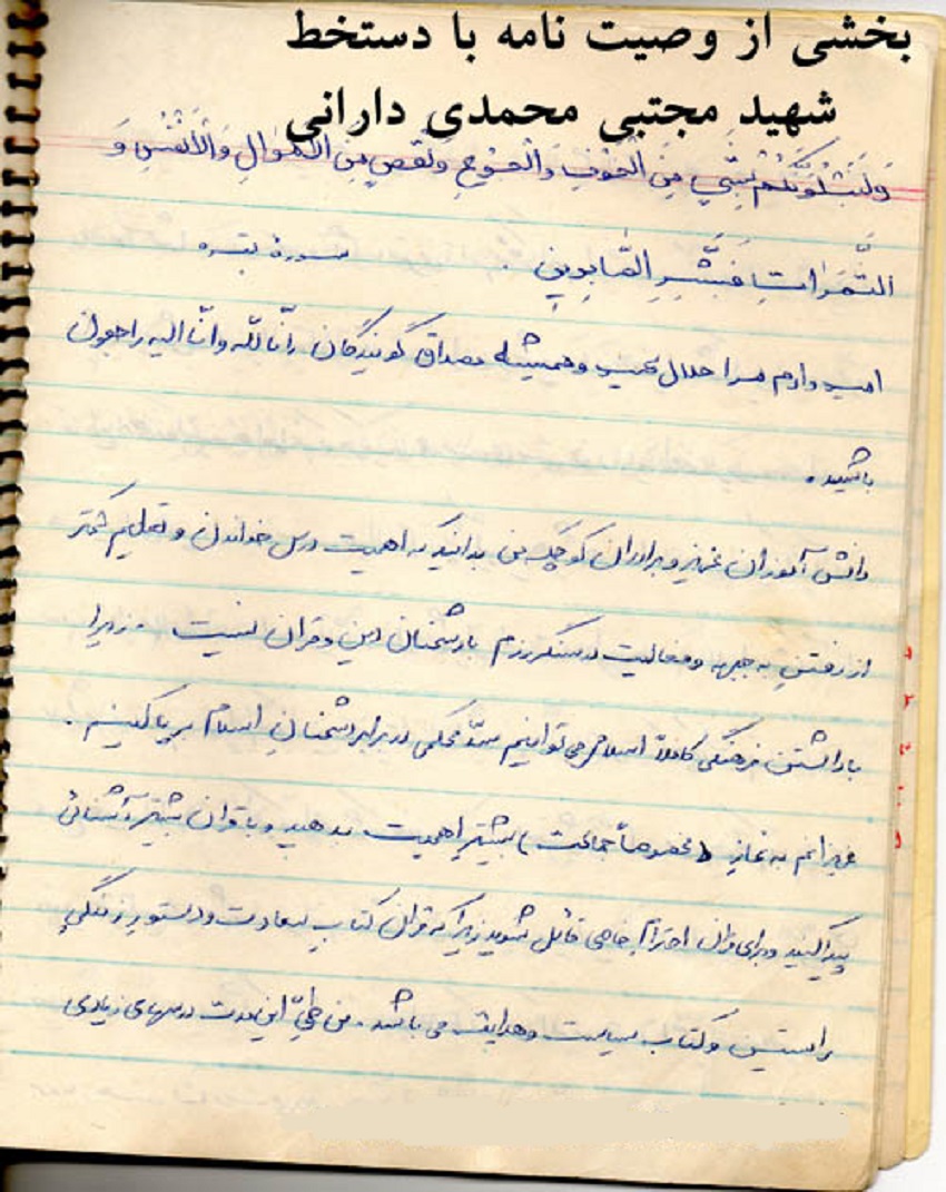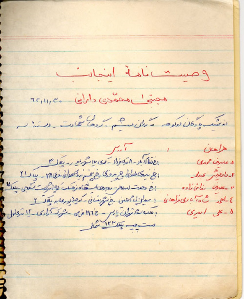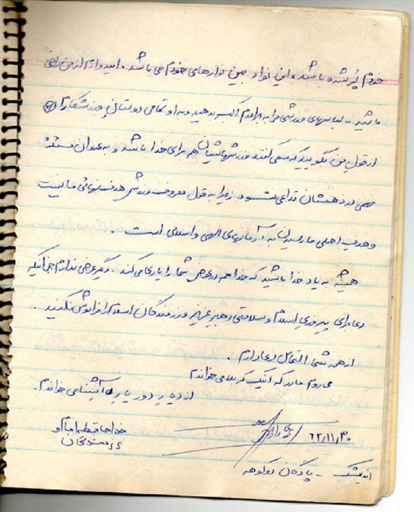 دستخط و امضاء شهید